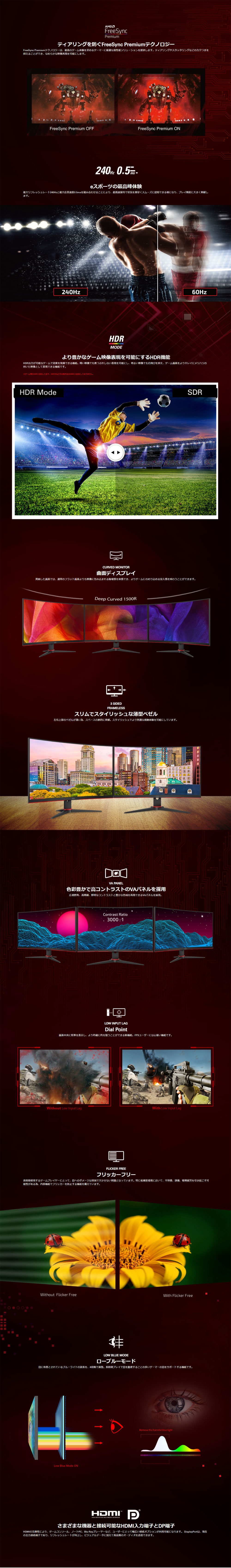 付属品 | スタンド、電源ケーブル、HDMIケーブル、Display portケーブル、Audioケーブル、保証書、CD-ROM、OSD機能説明書 |
