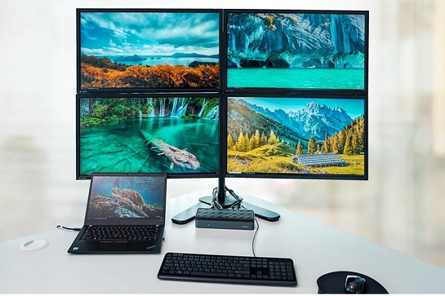 4 台すべてのディスプレイでフル 4K (3840 x 2160 p60) 解像度または DisplayPort (3840 x 2160 p60) をサポートし、2 台および 3 台のモニターの表示モードをサポートする高性能クワッド モニター ドックにより、ワークステーションはかつてないほど強力になりました。利用可能な 8 つのビデオ出力ポートにより、HDMI または DP++ ディスプレイ オプションのどちらかを決定して、構成の互換性を確保できます。