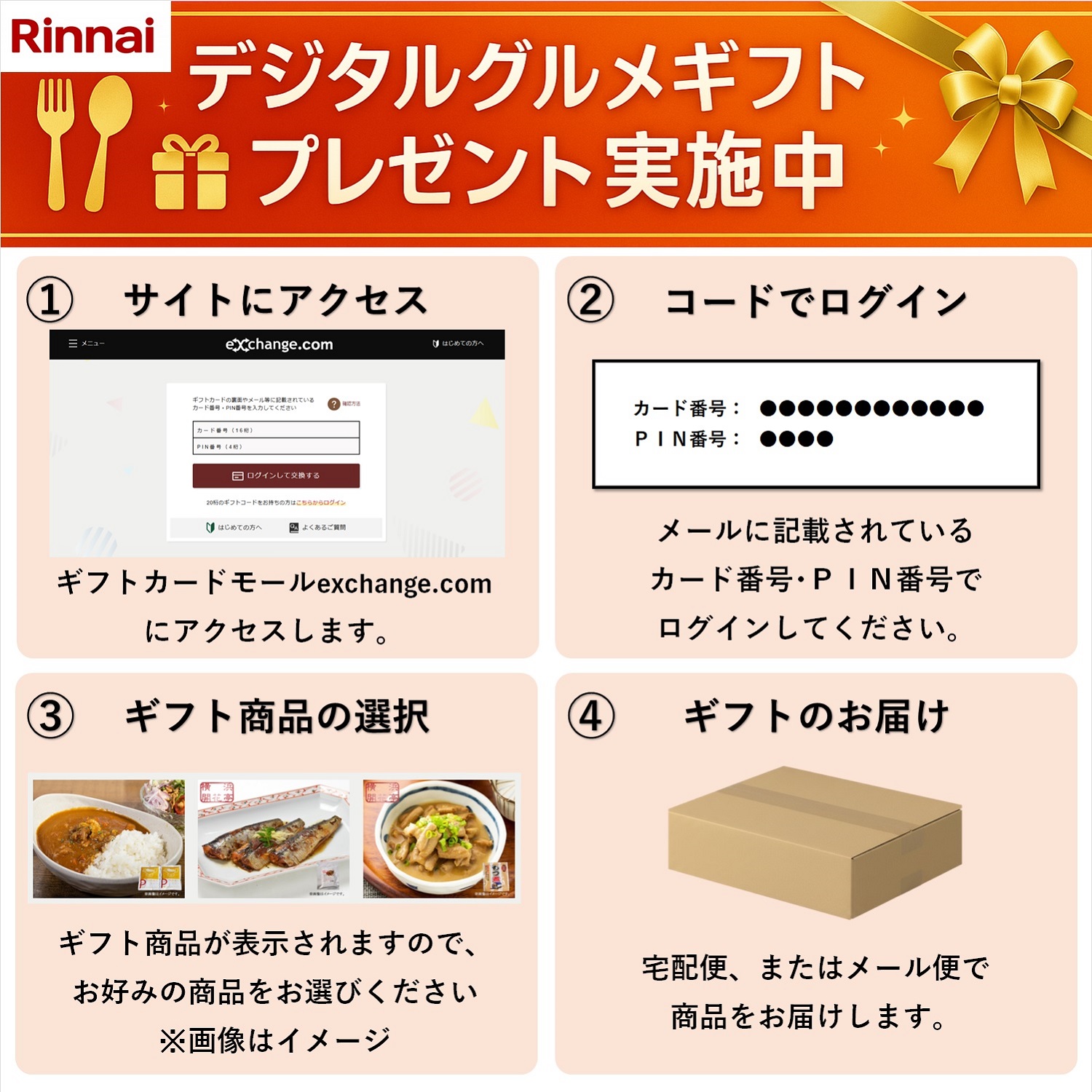 リンナイ ガステーブルお買い上げの方にWebサイトでグルメギフトが選べるデジタルコードをプレゼント