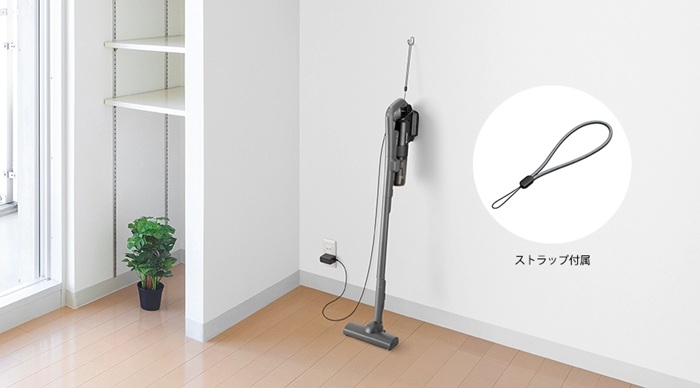 いろんな場所にサッと立てかけて置ける「ちょいかけフック」を搭載しているので、掃除の中断再開もラクにできます。