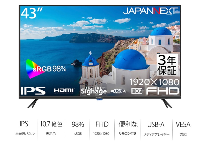 10.7億色表示 sRGB:98% デジタルサイネージ対応
