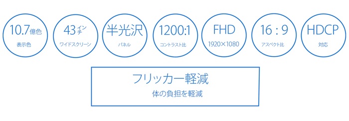 モニター画面の点滅であるフリッカー(ちらつき)を抑えて光量を調整することで目への負担を軽減します。