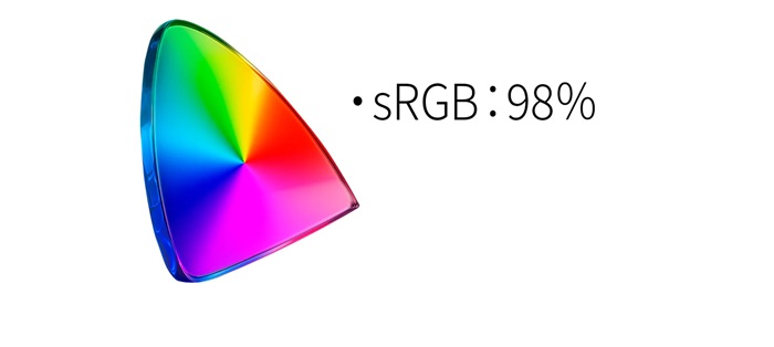 sRGB : 98%の高性能パネルが、鮮やかで精緻な色彩表現を実現します。写真鑑賞やウェブブラウジングなどはもちろん、色の正確さと安定した明るさが求められるプロフェッショナルな用途にも最適です。忠実な色再現により、クリエイティブ作業における信頼性を高めます。