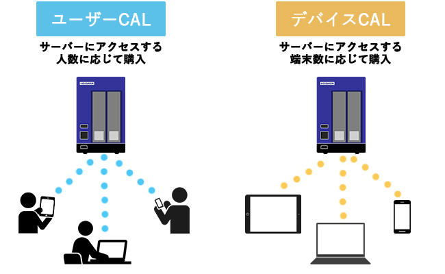Windows Server CALには、ユーザーCALとデバイスCALの2種類があり、Windows Serverのバージョンごとに異なります。
