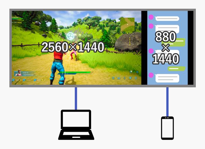 例えば、PCとスマホを接続すれば、ゲーム中にスマホ画面を並べて、メッセージなどをすぐにチェックできるので、便利です。