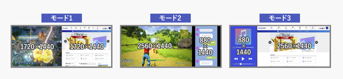 画面の中央を分割するモードをはじめ、3種類の分割モードがあります。詳細は「詳細ガイド」をご確認ください。