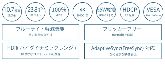 23.8インチ IPSパネル 4K解像度液晶モニター