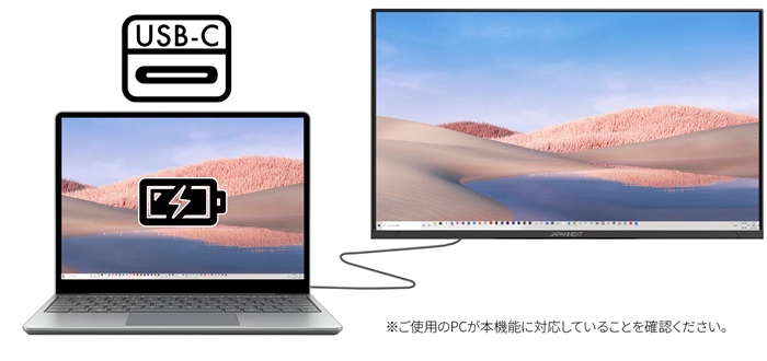 USB-C ケーブル1本で、PC本体への最大65W給電とモニターへの映像出力が可能です。