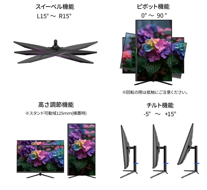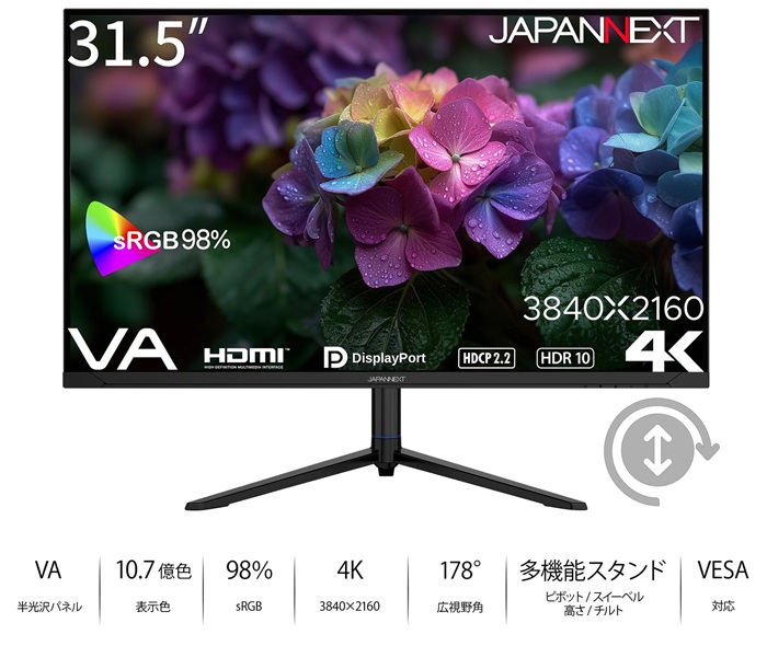 10.7億色表示/ sRGB:98% / 昇降式多機能スタンド搭載