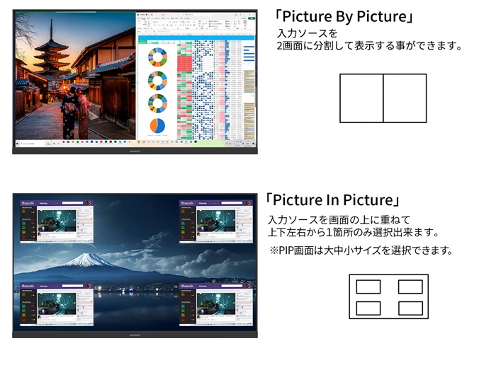 複数の入力を同時に表示すPBP/PIP機能搭載