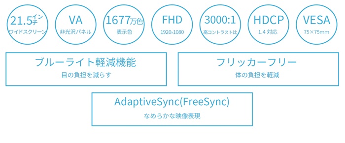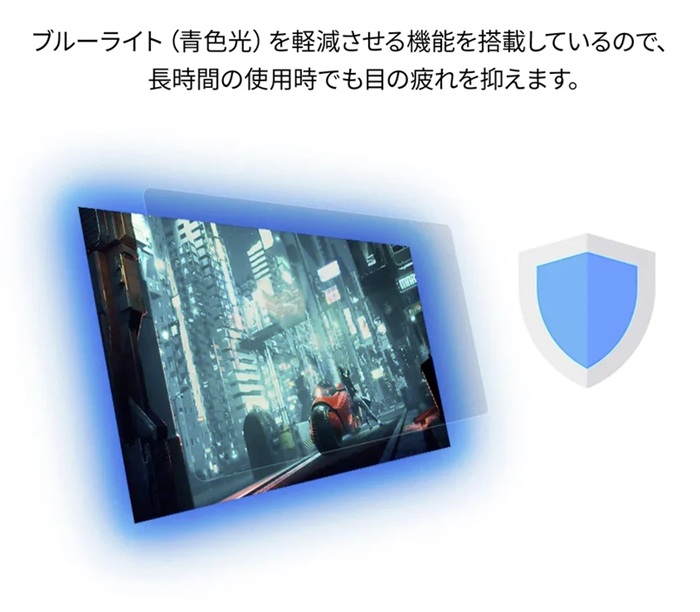 色鮮やかに画像を映し出す高品質VAパネルは高いコントラスト比により黒がくっきりと表現されるので映画鑑賞などにも最適です。
