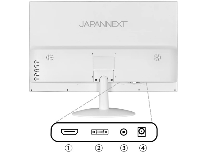 ①HDMI : 1.4 (1920x1080)@100Hz ②VGA : 1920x1080@75Hz ③オーディオ入力(VGA入力と併用可能) ④電源ポート |