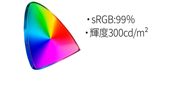 表示色 | 10.7億色 sRGB99% / DCI-P3 85% |