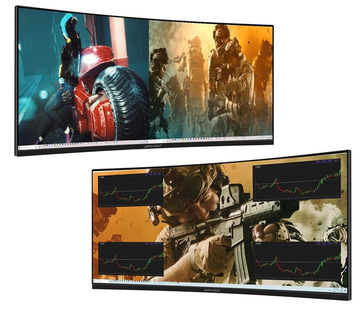 3440×1440ドット対応の圧倒的な水平解像度を誇り、広域表示に対応することで作業効率を大幅に向上できます。大型グラフィックスを扱うDTPやCADソフトなどの作業パレットを配置したり複数ドキュメントを扱うオフィスワークや、WEBページの同時表示や、フルHD動画を楽しみながら、その他のアプリケーションを同時に表示することで様々な作業をよりよくサポートします。