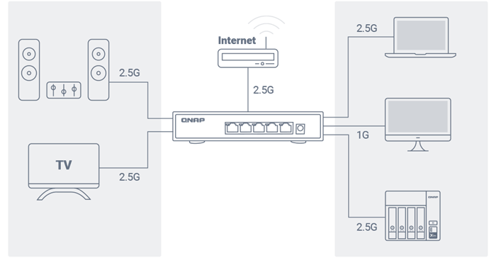 ネットワークのアップグレードに莫大な費用をかける必要はありません。2.5GbE接続は標準の1GbEと比べてすぐに顕著な改善がみられます。QNAPはマルチGigabit NBASE-T対応の2.5GbEスイッチを提供、これにより既存のCAT5eケーブルを使って複数のコンピューターおよびNASが接続でき、所属機構は予算を超えることなく、高速でセキュアかつスケーラブルなネットワーク環境を導入できます。