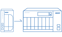 新しいNASへの移行NASハードドライブを、より大きなQNAPNASに取り付けても、既存のすべてのデータと設定を保持します。 |