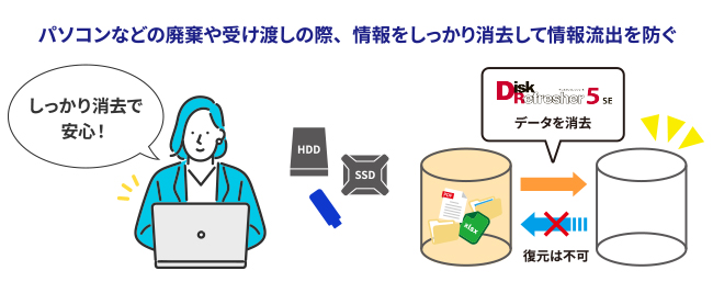 第三者への情報漏えいを防ぐ!データ抹消アプリ「DiskRefresher5 SE」