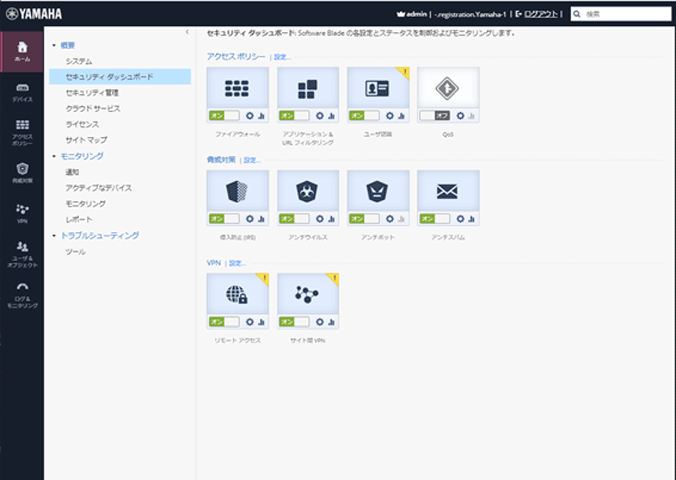 各種セキュリティー機能はダッシュボードで簡単にON/OFFできます。