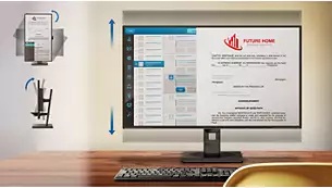 コンパクト Ergo ベースは、傾きや回転、高さの調整により、視聴者が最も快適で見やすい位置へと導く、人に優しいフィリップスのモニターベースです。