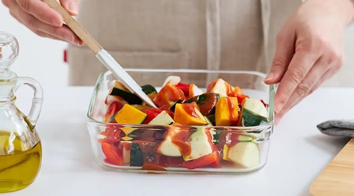 食材、分量が変わっても自動で調理OK。レンジ加熱可の容器であれば、ガラス製でもプラスチック製でも使えます。*1