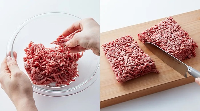 全解凍、サックリ解凍ひき肉はほぐしやすく、薄切り肉ははがしやすくして、すぐに調理できる状態に解凍する「全解凍」。使う分だけサックリ切って残りは再び冷凍できる「サックリ解凍」を搭載。 |