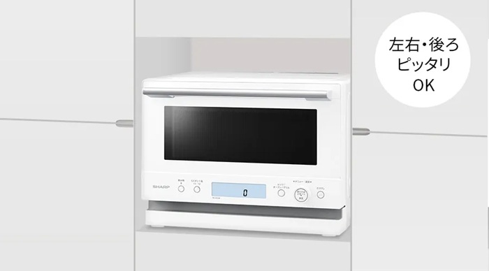 業界トップクラスの省設置面積でスッキリ置ける!「左右・後ろピッタリ置き」に対応、さらに奥行き38.4cmで、限られたキッチンスペースを有効活用できます。※2025年7月1日現在。国内家庭用100Vオーブンレンジ(総庫内容量30L未満)において。設置面積1798cm²(幅46.8cm×奥行38.4cm) |
