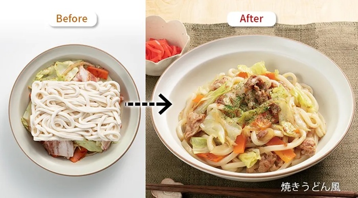 残りごはんやゆでめんがあればお好みの具材を準備するだけ! フライパンやお鍋いらずで、後片付けもカンタンです。