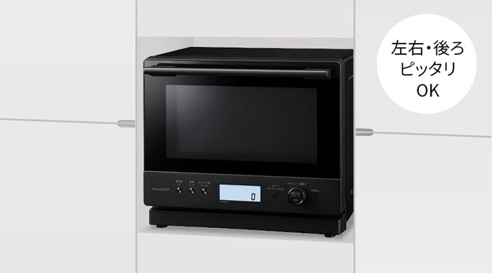 業界トップクラスの省設置面積でスッキリ置ける!「左右・後ろピッタリ置き」に対応、さらに奥行き38.5cmで、限られたキッチンスペースを有効活用できます。※2025年7月1日現在。国内家庭用100Vオーブンレンジ(総庫内容量30L未満)において。設置面積1791cm²(幅46.5cm×奥行38.5cm) |