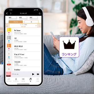 「CDレコミュージック」アプリ上で、実際にユーザーが再生した回数を集計、ランキングにしてアプリ内で公開しています。性別、年代、地域別など、あなたの周りがどんな音楽を聴いているのかチェックすることができます。また、気になるアルバムや曲名をタップすると、その画面からアルバム名やアーティスト名でのインターネット検索もおこなえます。