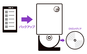 CDレコで取り込んだ大事な楽曲は、DVDメディアにバックアップできます。スマホの故障や「CDレコミュージック」アプリを誤って削除した場合などの不測の事態に備えて、定期的にバックアップをおすすめします。