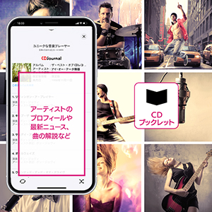 「CDジャーナル誌」(音楽出版社)のデータベースから、アーティスト情報やニュース、これまでリリースしたCDのディスコグラフィを表示。耳だけでなく、目でも音楽を楽しむことができます。CDブックレットサービスのご利用は、「CDレコミュージック」アプリ内でユーザー情報登録をする必要があります。