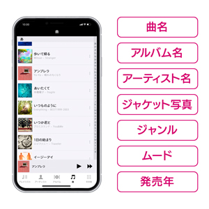 CD、Apple Musicの曲を混在させて聴くミックス再生やプレイリストの作成もできる※ |