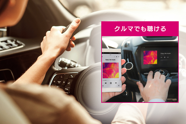 「CDレコミュージック」アプリの音楽をカーオーディオで聴くことができます。