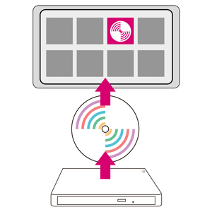 DVD再生アプリ「DVDミレル for CDレコ」を追加購入すると、CDレコ6のドライブをつかって、スマホやタブレットでDVDが再生できます。CDの初回特典DVDも、映画のDVDもスマホで楽しめます。