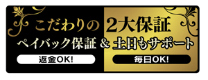 | 保証期間 | 1年保証、アフターサービス(ペイバック保証/土日サポート対応) |