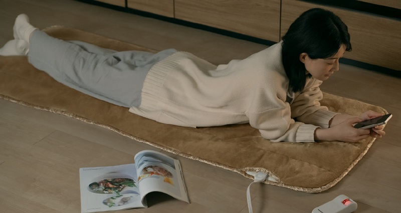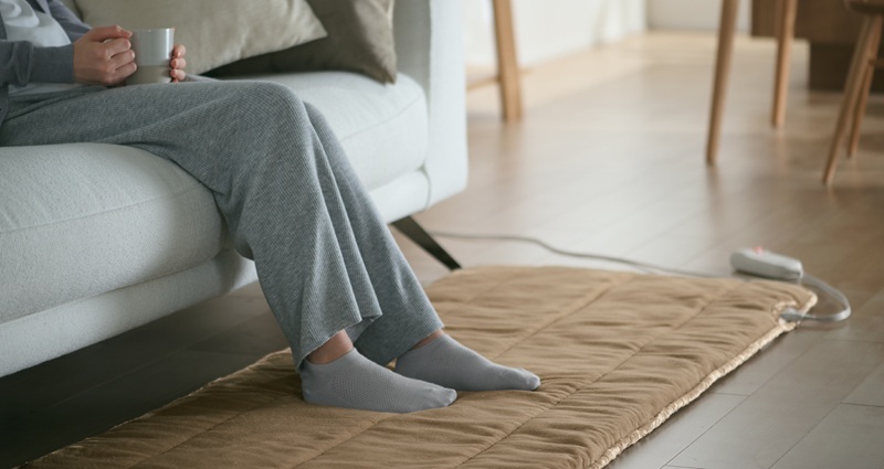 友人とテレビを見て楽しむ。ソファの上にマットを敷いてあたたかい座面をシェア。