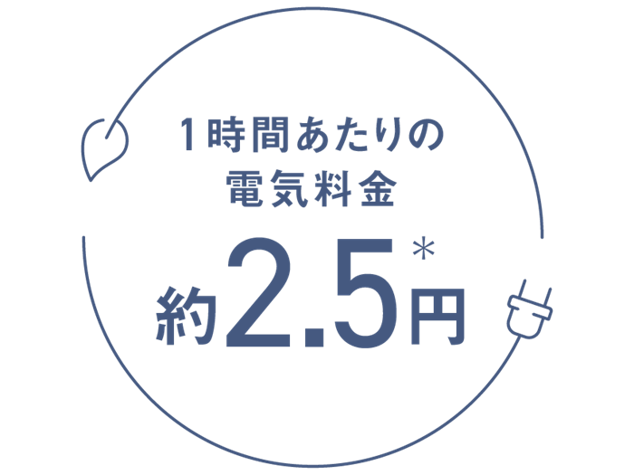 *電気代は、実際に測定した1時間あたりの消費電力量から計算しています。電力料金目安単価1kWh=31円(税込)[2022年7月改定]で計算。1時間の電気代は、一般社団法人 日本電機工業会の測定に基づいて標準品を測定した値です。