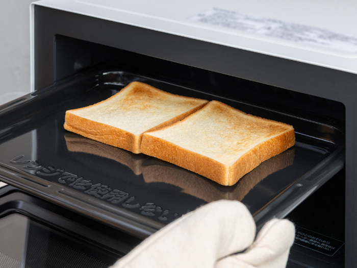 トースト「トースト」ボタンを押すだけ。一度に2枚まで焼くことができます。(裏返し必要) |