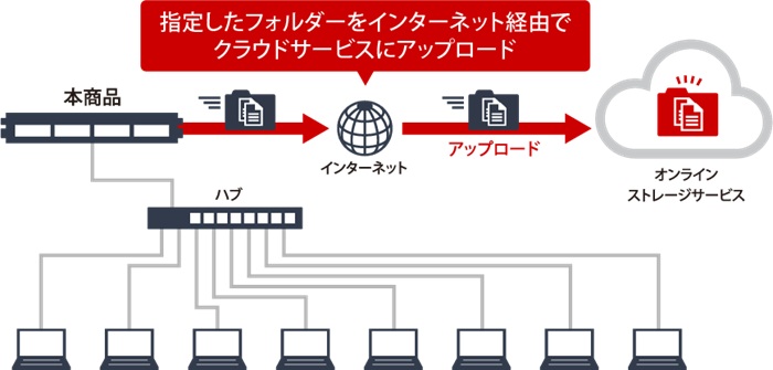 データをクラウド上に保存するオンラインストレージサービスと連携可能。データをクラウド上に保存することで、大規模災害からも大切なデータを守ります。