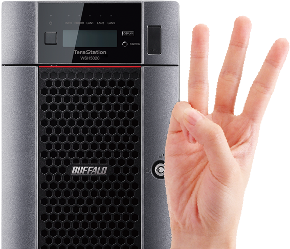ソフトウェアRAIDでは、バックアップ実行中などCPU使用率が高まる時間にファイルアクセスが不安定になることも。ハードウェアRAIDを搭載する本製品では、バックアップソフトやウイルススキャンソフトを同時利用した場合でもCPU負荷を軽減し、常に安定稼働を提供します。