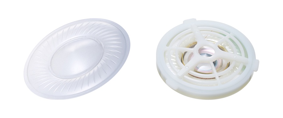 音質の核となる振動板は、充分な量感と低歪で低音域を再生するための柔らかさと、超高音域を再生するために形状を保持する硬さとを兼ね備える必要があります。そのため、複数回に渡る試作を経て、5Hz-80kHzの超広帯域再生を実現する特殊な振動板形状を採用しました。