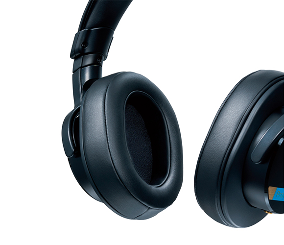 正確な音源再生のため、様々な耳の形状にフィットするとともに、長時間の作業でも快適な装着感を実現するため、イヤーパッドの形状を徹底的に設計しました。十分な厚みのある低反発ウレタンフォームを採用し、気密性を確保しています。