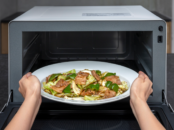 下ごしらえした材料を耐熱ガラス製ボウルに入れたら、あとはおまかせ。冷凍・冷蔵・常温の混在も可能です。