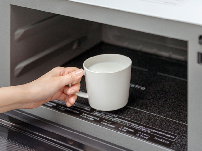 牛乳、コーヒー、お酒などの飲み物のあたためも、吹きこぼれを防いでしっかりあたためます。牛乳1杯約1分10秒。