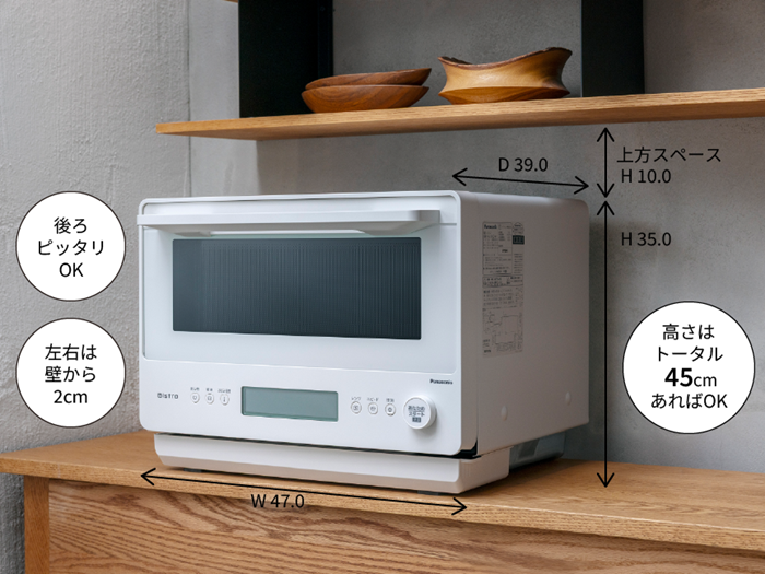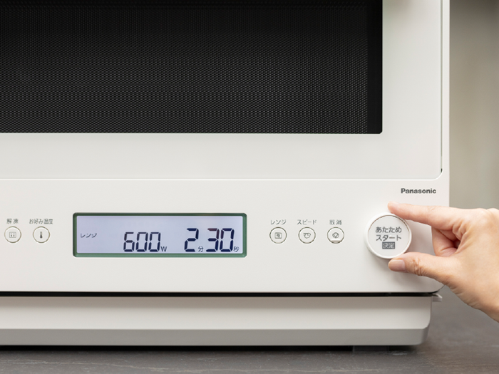 明るく大きなディスプレイで文字もクッキリ見やすい。シンプルな操作で、毎日のレンジ使用が快適に。