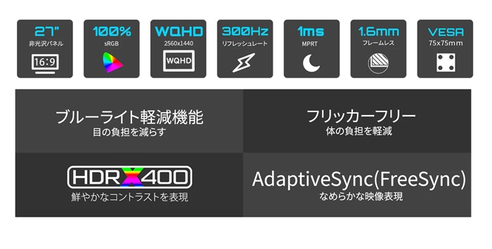 27” IPSパネル 300Hz対応ゲーミングモニター