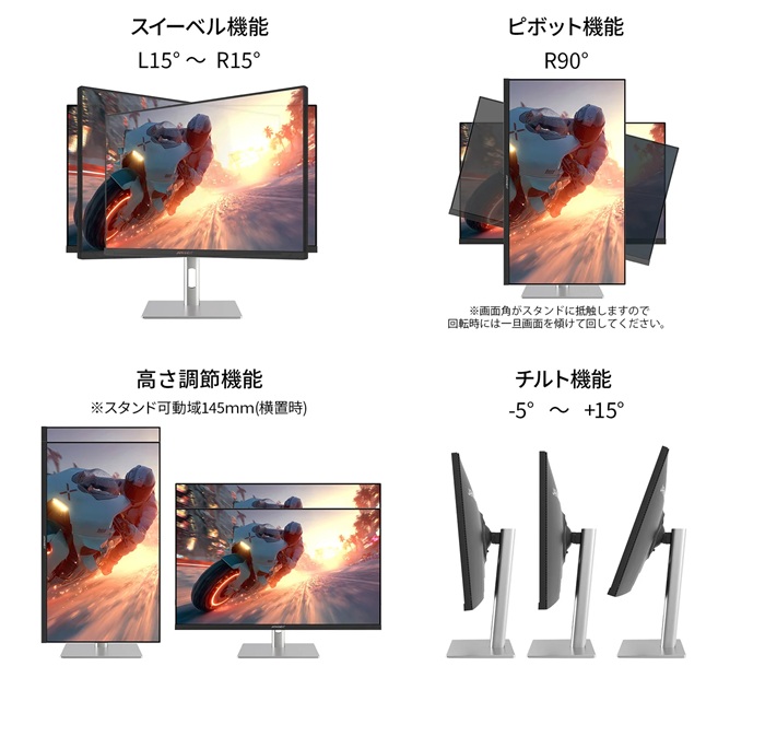 | 左右角度調整(スイベル)機能 | あり 「R15o/L15o」 |