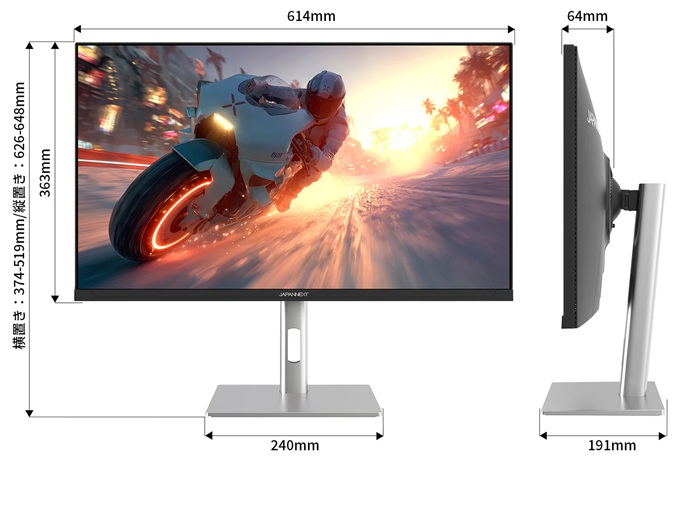 | 本体サイズ(H×W×D) | 高 横置き374-519/縦置き626-648mm×幅 横置き614/縦置き363mm×奥行191mm |