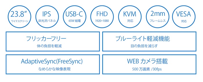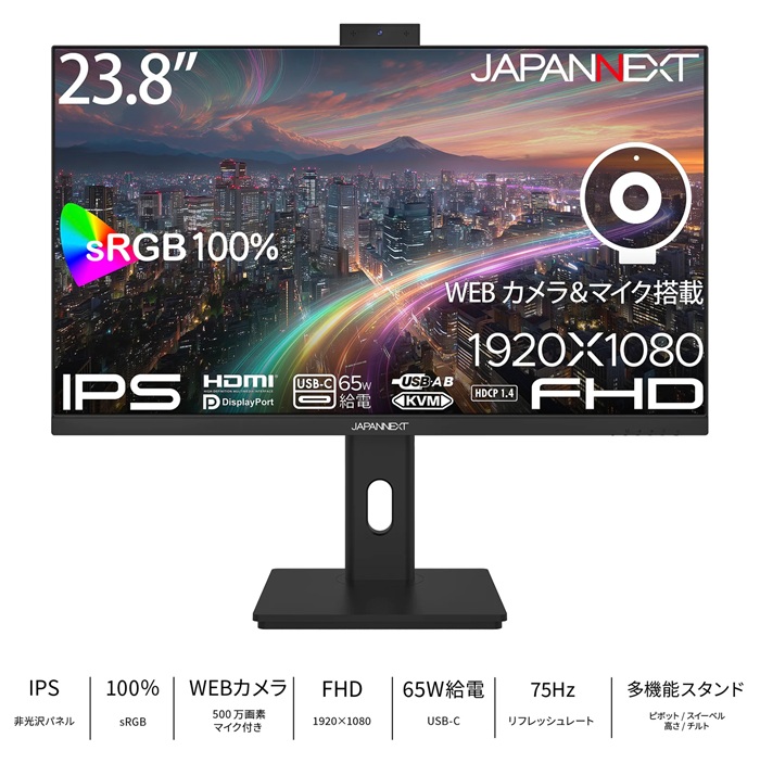 WEBカメラ搭載 USB-C 65W給電 sRGB:100%