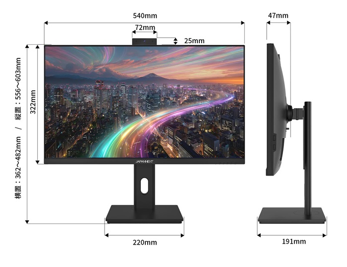 | 本体サイズ(H×W×D) | 高 横置き362-482/縦置き556-603mm×幅 横置き540/縦置き322mm×奥行191mm |